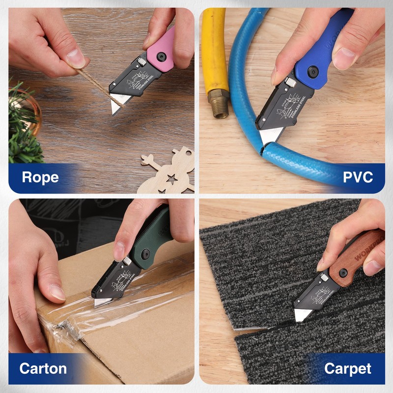 - ▶ Various Applications: The box cutter knife can be used for different jobs that you may need to get done. It cuts through paper, carpet, plastic, cartons, cloth, bags, leather, PVC, and much more