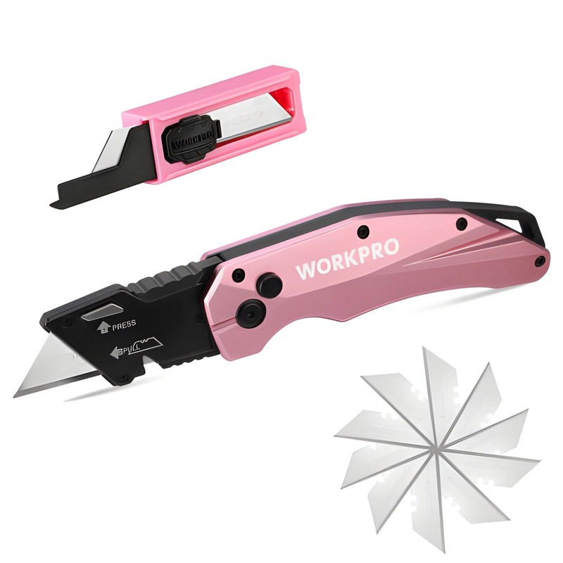 WORKPRO Folding Utility Knife Quick Change SK5 Box Cutter 10 Extra Blades Includ