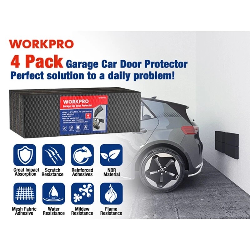 WORKPRO Garage Wall/Car Door Protector Set 4Pack Resilient NBR Foam Bumper Guard