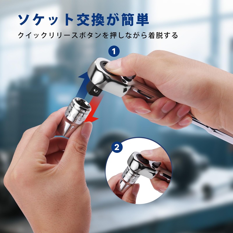 - Quick Release Button Design: The ratchet handle is designed with a quick release design, and the socket can be easily removed by pressing the button on the back of the head