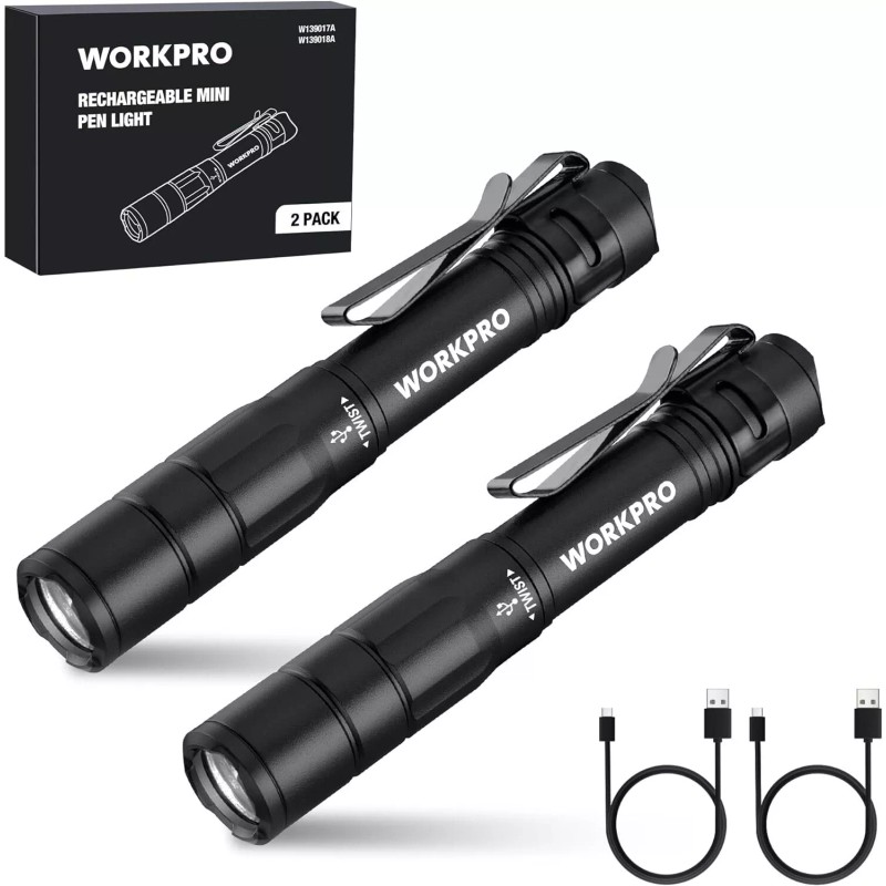 WORKPRO Rechargeable Pen Light Mini Flashlight 2 Pk Ultra-Compact EDC Flashlight - Gray