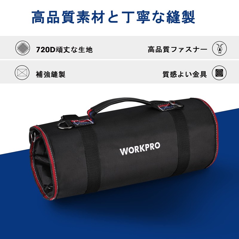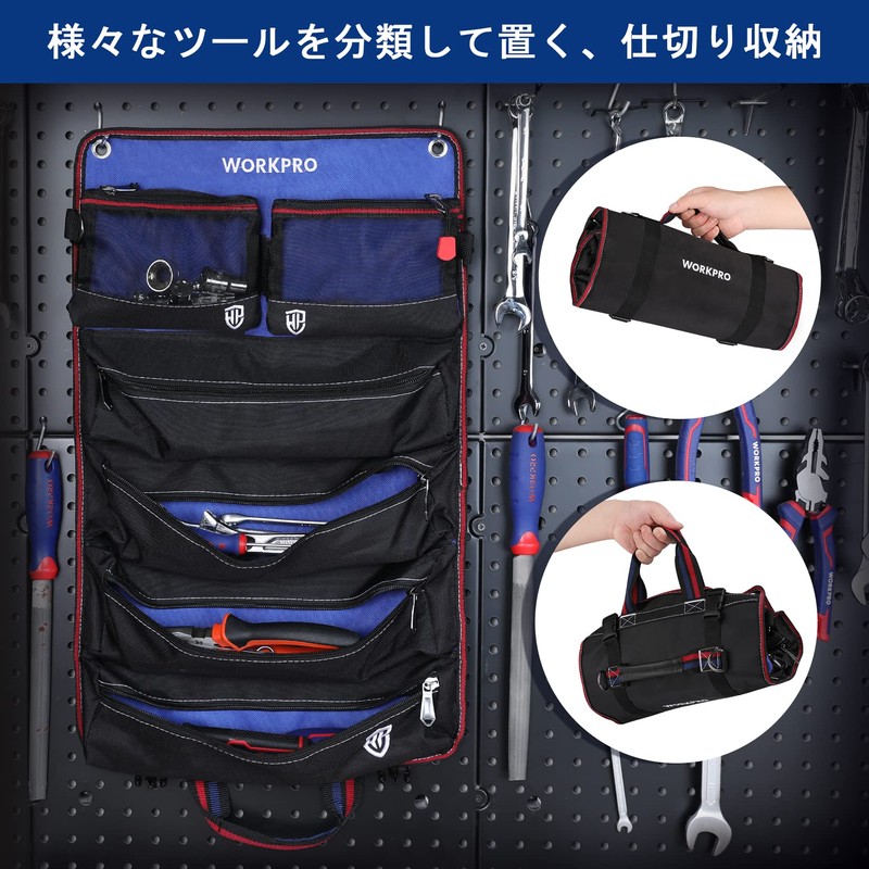 Workpro Tool Bag, Tool Roll Bag, Tool Case, Tool Bag, Heavy Duty, 6 Storage Pockets, Carabiner, Stopper, Multi-Purpose Tool Case, Car, Home, Carpenter Storage