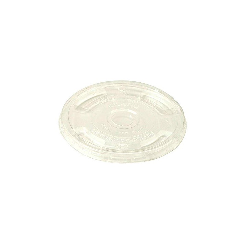 World Centric CPL-CS-12 100% Compostable Ingeo Flat Lids, Straw Hole, for 9Q - 24 oz. Cups, Clear (Pack of 1000)