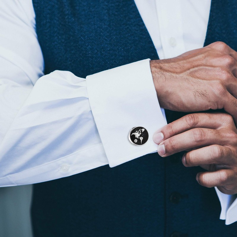 World Map Cufflink – Men's World Map – Business Style – Shirt (Black)