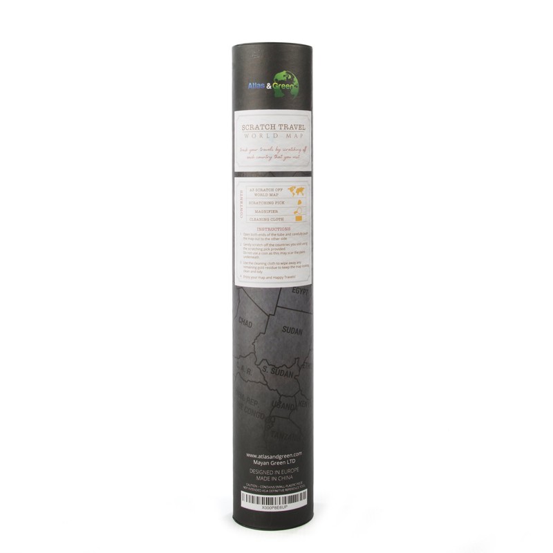 - DELUXE DESIGN. Atlas & Green's scratch off world map poster, printed on thick gloss black paper with gold foil creates stunning wall art for your room decor. Scratch off the foil to reveal a beautifully cartographically map of the world underneath