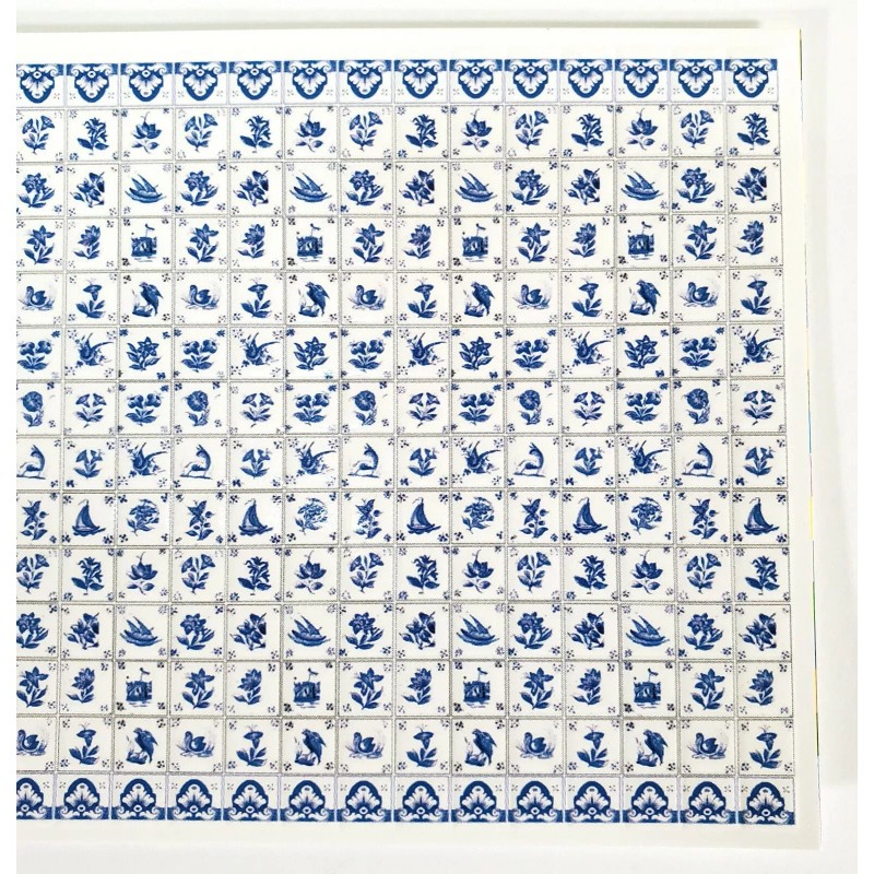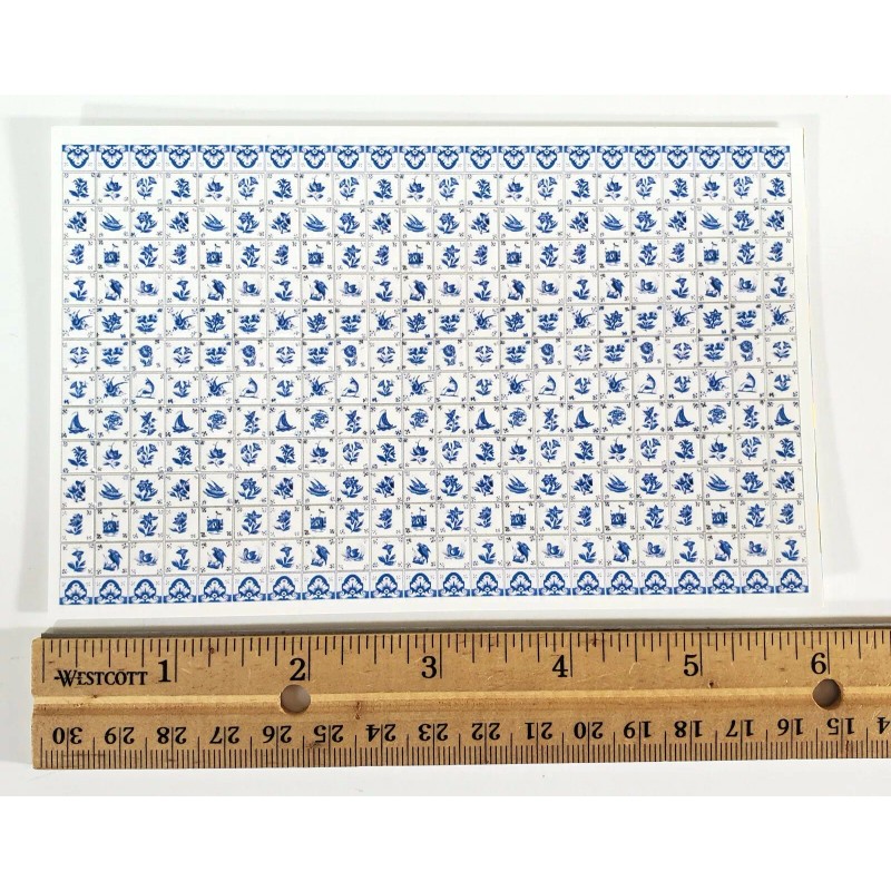 World & Model Dollhouse HALF SCALE Wall Tiles Embossed Delft Blue & White 1:24 Scale