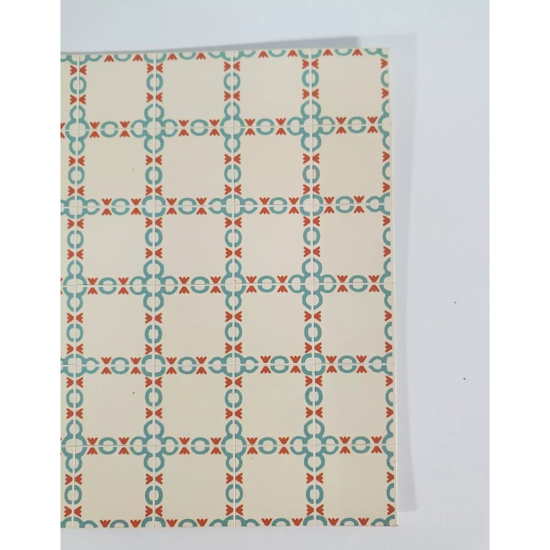 World Model Dollhouse Tile Flooring Sheet Cream Blue/Gray Red 1:12 Scale Break Off Pieces