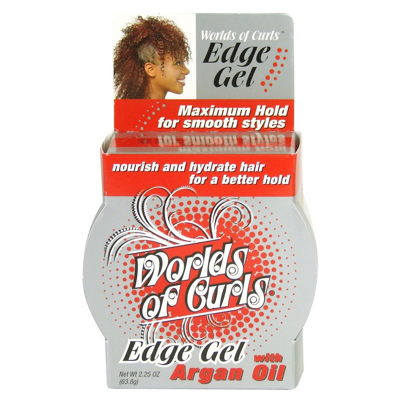 World of Curls Edge Gel maximum hold with Argan Oil for smooth styles. Enrich your hair with our Argan Oil formula. Designed with sleeker, smoother edges In mind. Great for relaxed and natural styles. Directions: Apply to edges and smooth with fingertips or small brush or comb. Great for natural or relaxed styles.