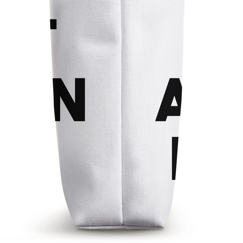 - 16” x 16” bag with two 14” long and 1” wide black cotton webbing strap handles.