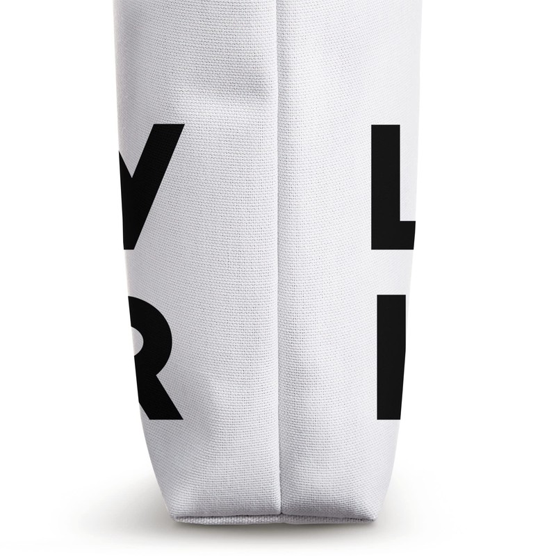 - 16” x 16” bag with two 14” long and 1” wide black cotton webbing strap handles.
