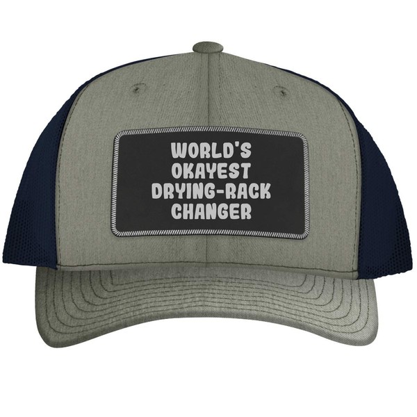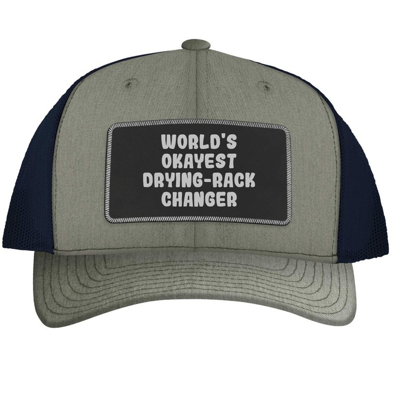 World's Okayest Drying-Rack Changer - Leather Black Patch Engraved Trucker Hat, Heather-Navy, One Size