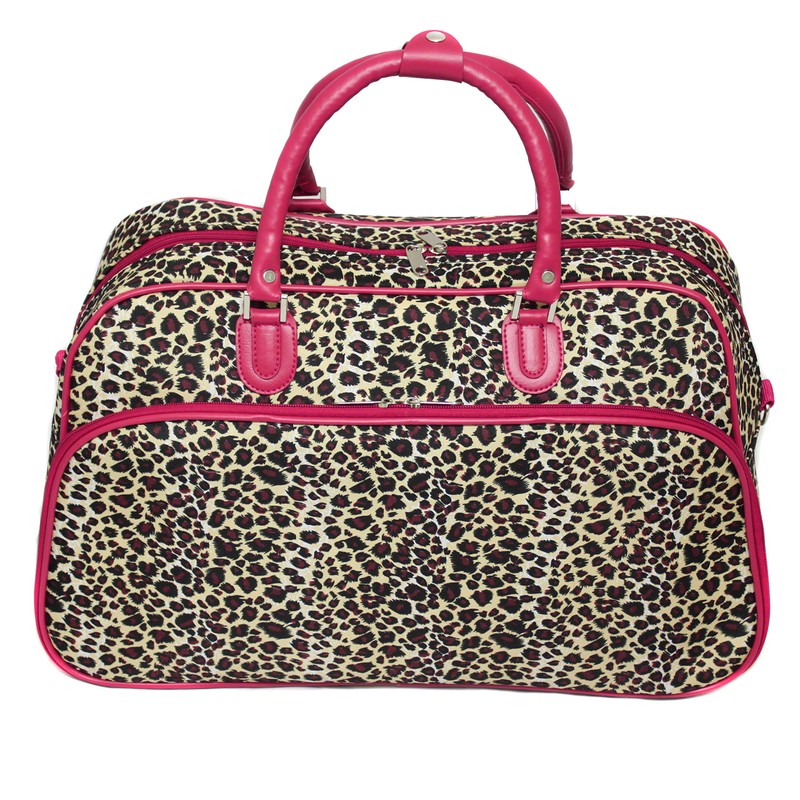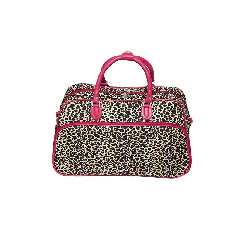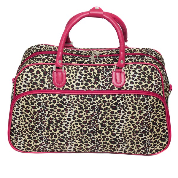 World Traveler 21-Inch Carry-On Shoulder Tote Duffel Bag, Pink Trim Leopard, One Size