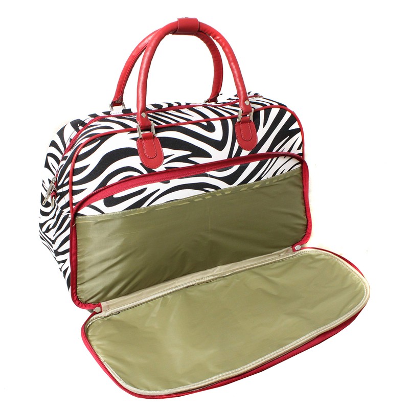World Traveler 21-Inch Carry-On Shoulder Tote Duffel Bag, Red Trim Zebra, One Size