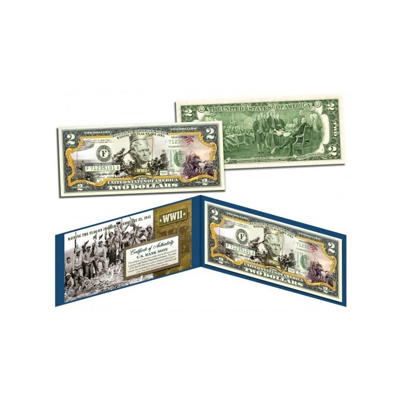 World WAR II - Raising The Flag on IWO JIMA Uncirculated Two Dollar Bill Special Edition Collectible Display Holder and Certificate
