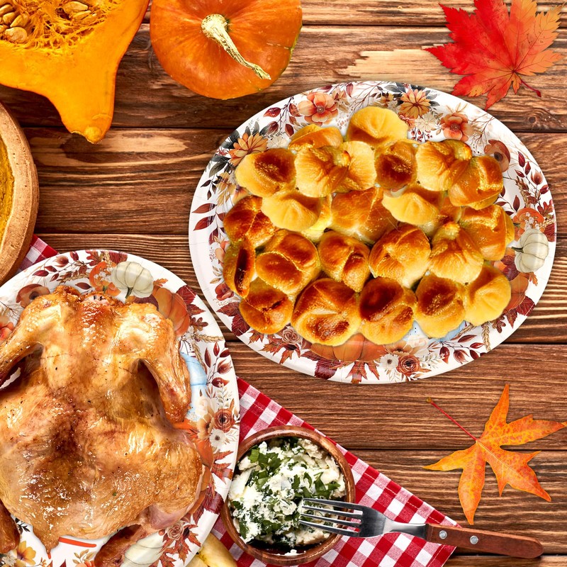 - Thanksgiving Plates: The Thanksgiving plates will bring joy and delight to your guests, making it a memorable addition to your fall party or event