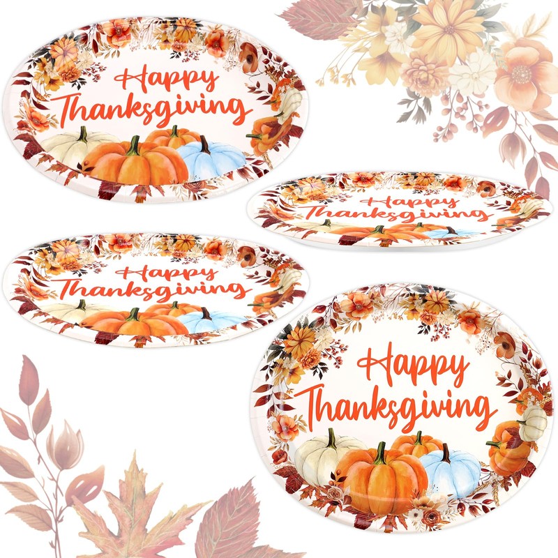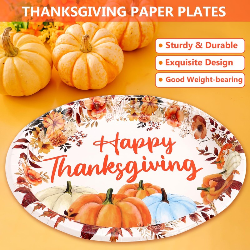- Package Includes: 24 count Thanksgiving oval paper plates; 10 X 12 inches; Shrink-wrapped