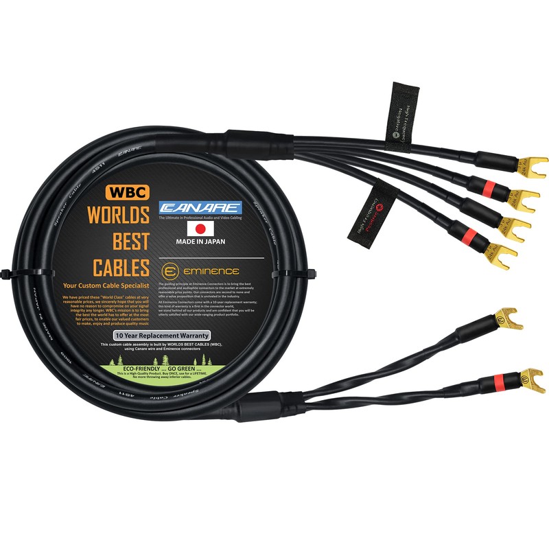 WORLDS BEST CABLES 4 Foot - Canare 4S11 – Audiophile Grade - HiFi Star-Quad Bi-Wire Single Speaker Cable for Center Channel with Eminence Gold Spade Connectors