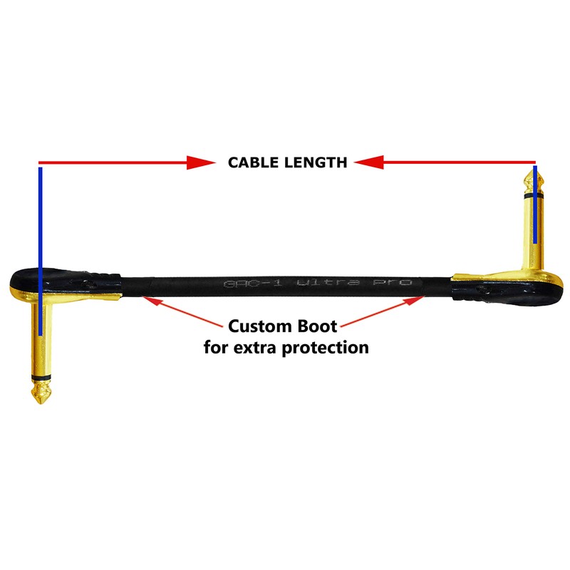 - Heavy duty construction using the lowest profile pancake design in the market. High-End Gold plating to ensure increased conductivity and tarnish resistance. Custom Boot included to protect the cable from damage due to handling stresses (no other cable construction of this type comes with a boot). This low-profile patch cable will save much needed space on your peddle board. The Black-Gold connector design will also visually compliment your gear and will look extremely sleek in your rig.