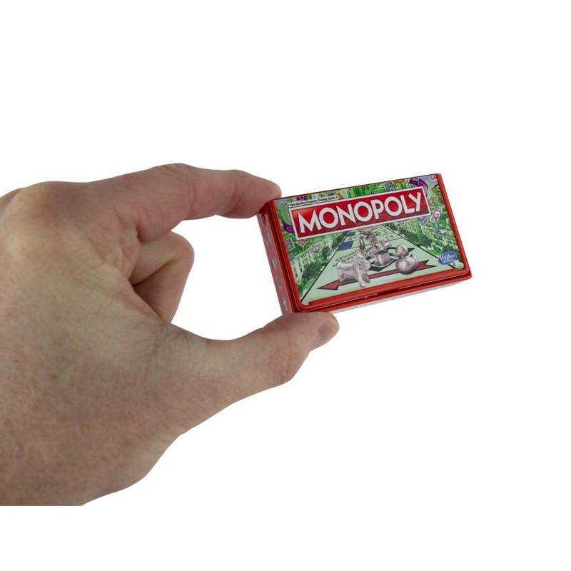 - The classic Family Game Night Favorite, Monopoly is now available in a size that will fit in the palm of your hand! Measuring only 3 x 1.75 x 0.5 of an inch.
