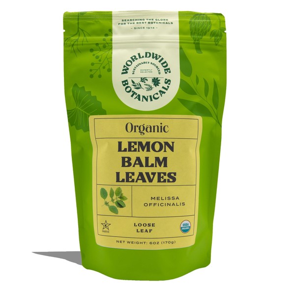 Worldwide Botanicals Worldwide Botanicals Organic Lemon Balm Tea, 6 Ounces - Loose Leaf Premium Herbal Tea | 100% Pure Lemon Balm Leaves | For Stress Relief and Good Digestion | Kosher