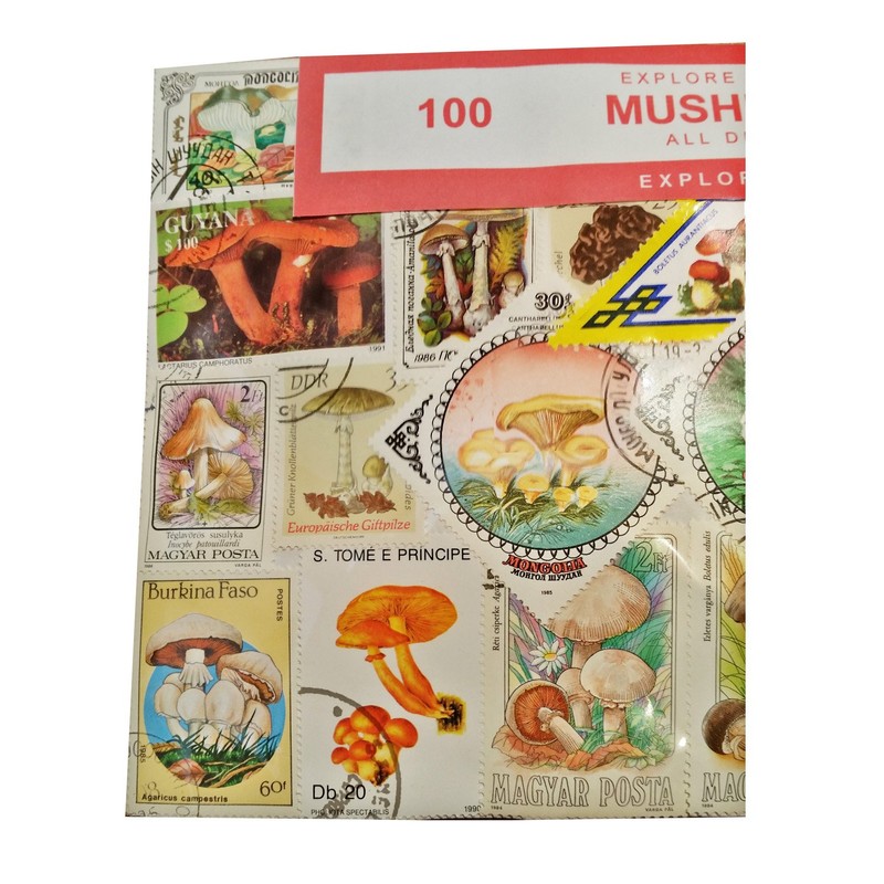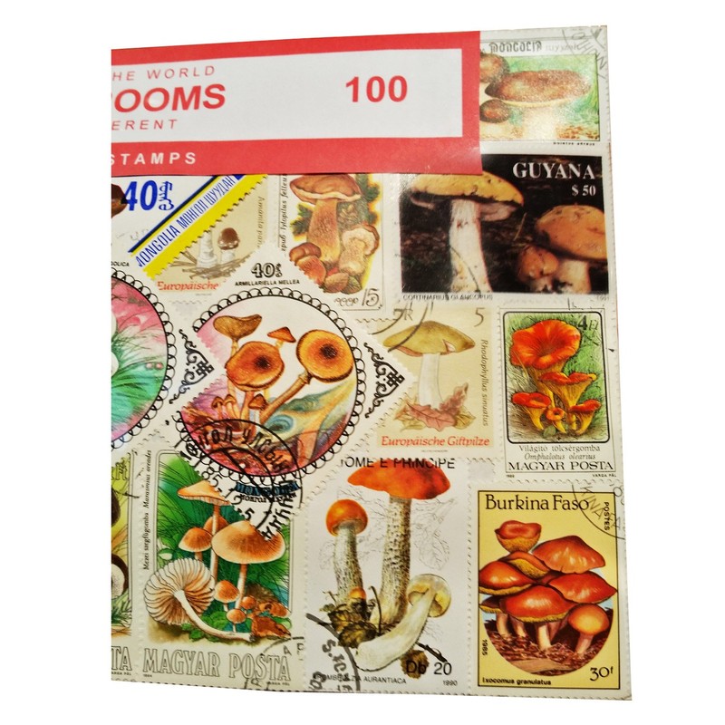 - PERFECT FOR AGES 9 TO 99! Stamp collecting is fascinating at any age! Mushroom stamps are so unique, can be difficult to find! These Mushroom stamps are from all over the world! Perfect for art projects, trading, or gluing into albums! Fascinating world history in every beautiful package! Each package has a different assortment of stamps: buy several for complete coverage!