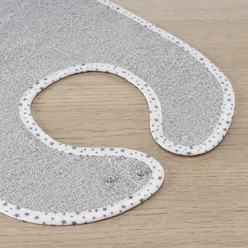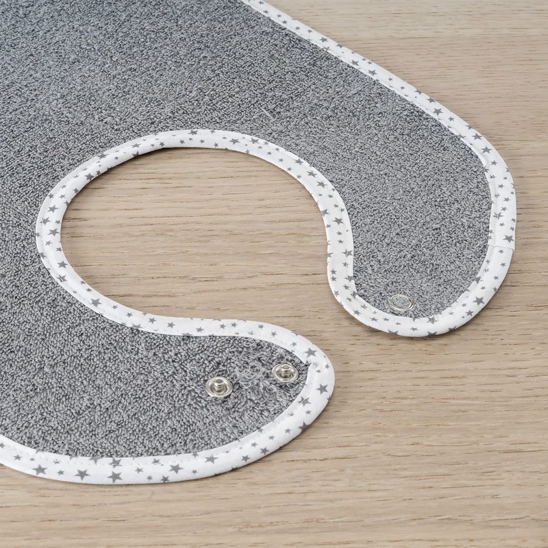 The beautiful combination of the two shades of grey and contrasting edges underline the quality and value of these children's bibs. Especially the small stars are a real eye-catcher - your baby will love it.