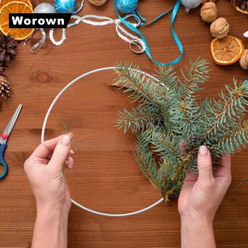 Worown 6pcs 25cm Floral Wreath Hoops, Silver Metal Rings for Making Wedding Wreath Decor and Wall Hanging Craft