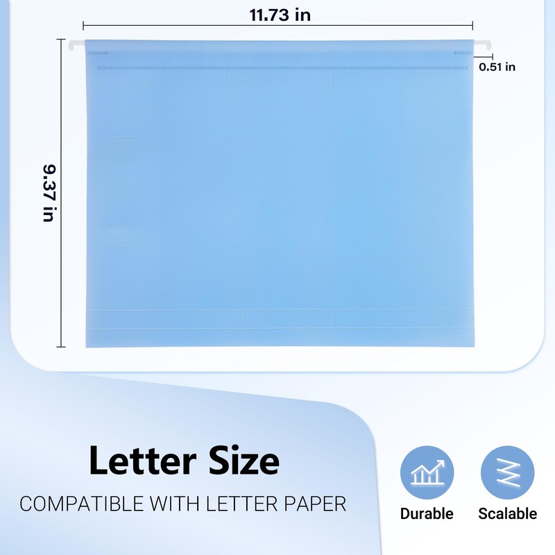 - 【Paper Folder Alternative】Available in a Macaron color tone close to traditional paper hanging folders, this folder is a durable plastic alternative that effectively substitutes paper while minimizing visual differences.