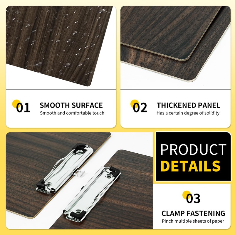 Designed for users who value both quality and portability, this wood-grain lap board measures 8.85" x 12.4" and fits both A4 and Letter papers, allowing seamless use across document formats. The realistic wood-grain finish enhances aesthetics and provides a non-slip surface for stable writing and sketching. Constructed from high-density fiberboard, the board is lightweight yet durable, making it easy to carry and store. The heavy-duty stainless steel clip, equipped with non-slip rubber pads, securely holds multiple sheets without leaving indentations. Perfect for office meetings, classroom notes, outdoor sketching, and creative drafts, this lap board is your go-to tool for productivity and inspiration wherever you go.