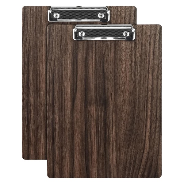 WORPSON Wood-Grain Lap Board Clipboard, for Letter & A4 Size Solid Wood Texture Writing & Sketching Board with Heavy-Duty Clip (Walnut, 2)