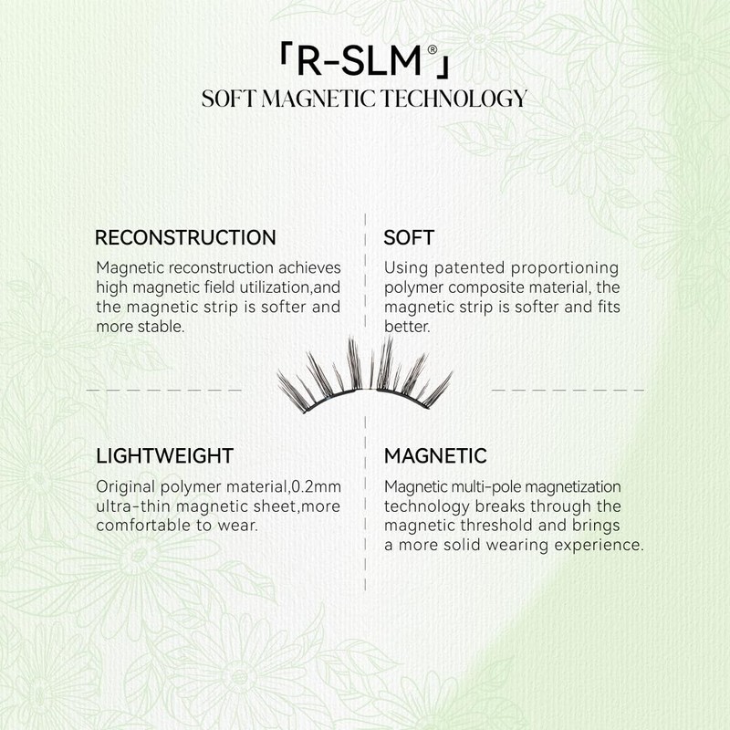 - Exclusive R-SLM Technology: Game-Changer in False Eyelashes, say goodbye to traditional gluing methods! With our exclusive patented R-SLM Technology, we've achieved a perfect synergy between efficiency and beauty. Recombination - Soft - Light - Magnetic, providing a snug fit that complements various eye shapes. Our magnetic lashes are designed to elevate your makeup routine effortlessly.