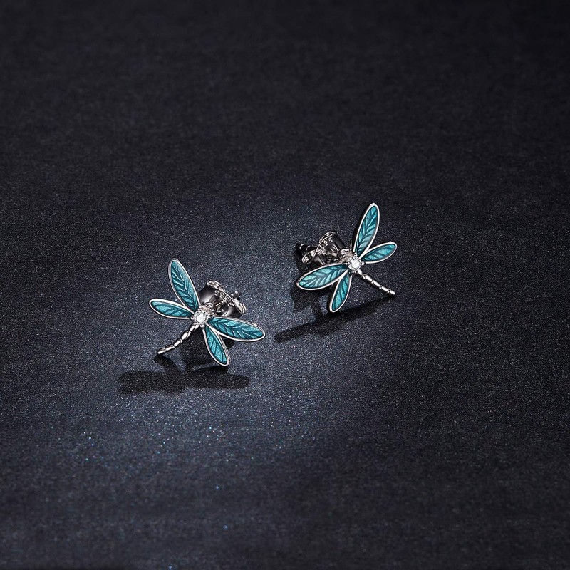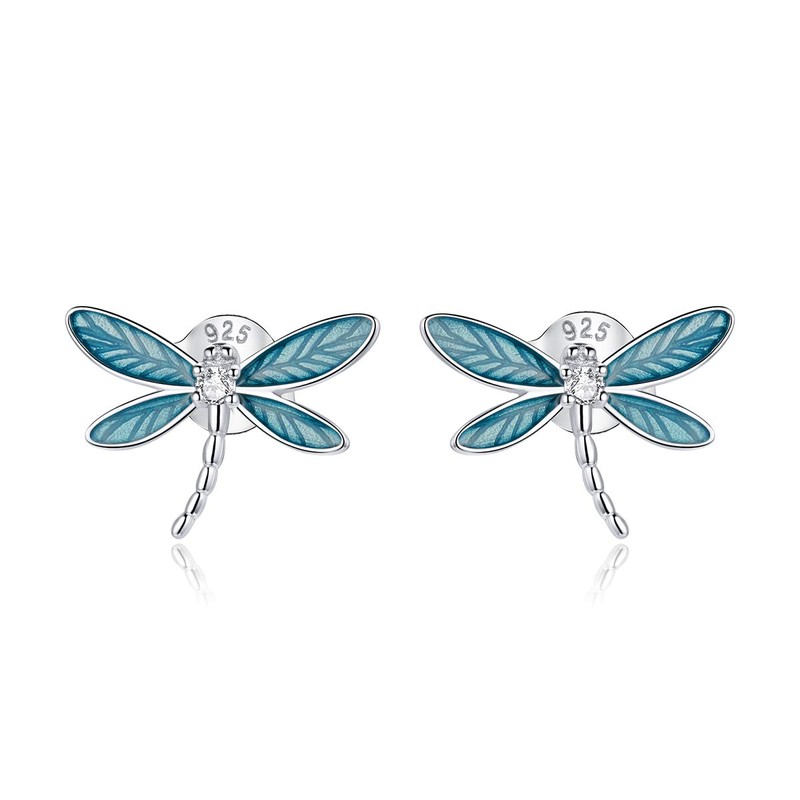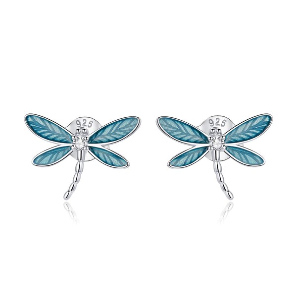 WOSTU - arete de tuerca de libélula delicada, chapados en oro blanco, hipoalergénicos, para mujer, joyería fina, Cobre, Circonia cúbica