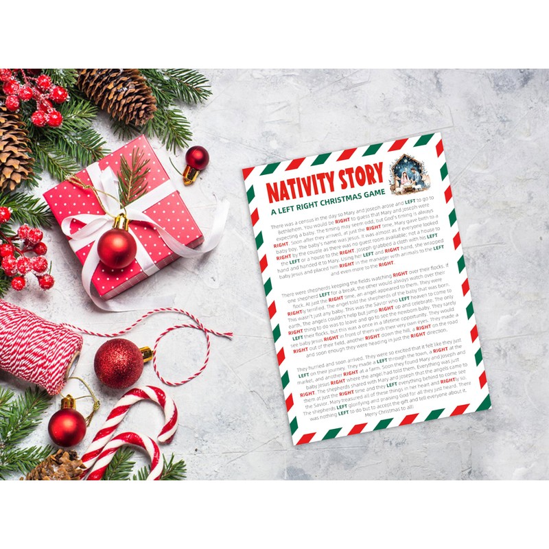 Woukaup Left Right Nativity Story - Christmas Games for Family Party or Large Groups, Religious Christian Present Passing Games for Church Sunday Family Activities, Classroom Exchange