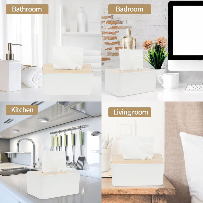 • Versatile: Tissue box cover rectangular can not only be used in the living room as it can also hold cosmetic tissues, make-up paper, kitchen paper, napkins, etc., so it can also be used in the kitchen, bathroom, dining table, office and other places and is suitable for a variety of decoration styles.