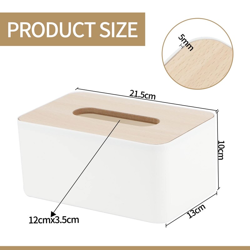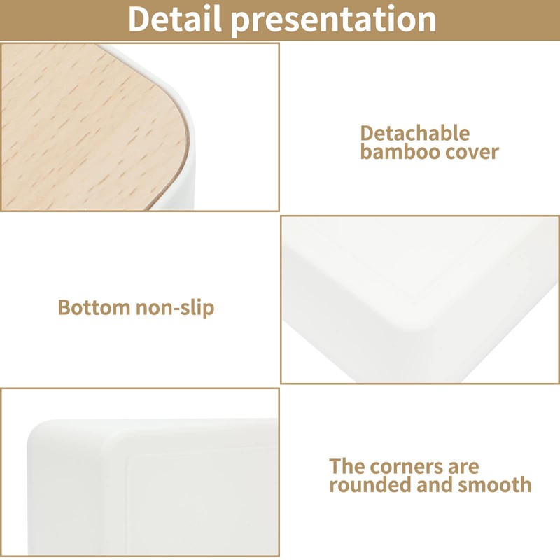 Tissue Box with Bamboo Top, Rectangular, Plastic, 21*13*9.5cm,Tissue Dispenser Box for Living Room, Office, Car, Bathroom