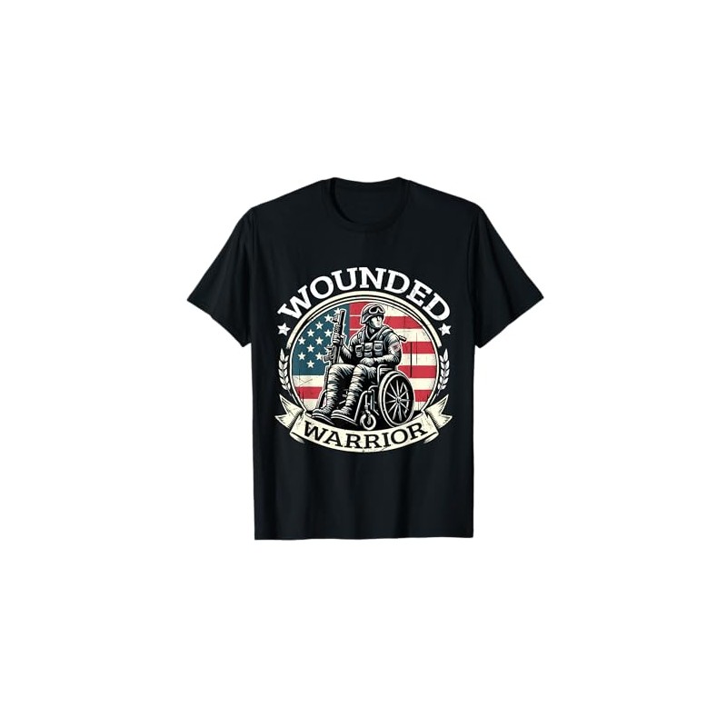 • Wounded Warrior, American hero, veteran support, military appreciation, disabled veteran pride, patriotic design, US flag, armed forces, soldier tribute, wheelchair warrior, wounded veteran, military sacrifice, freedom fighter, wounded hero