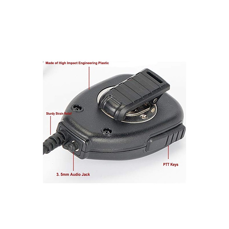 - The two way radio/GMRS radio accessories make with High impact casing and High Grade re-enforced cabling, 8 Position Reinforced Spring Clip The crystal mic with 360°rotatable clip and 19.29 inch cable length allow you can hang on everywhere you wanted