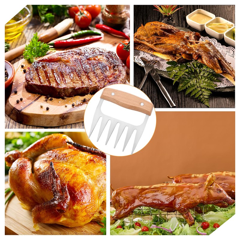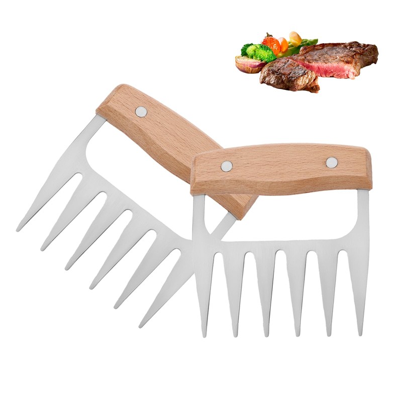 - Sturdy stainless steel: the meat claws are made of stainless steel, not easy to break, durable, and the handle is made of wood to protect your hands from heat