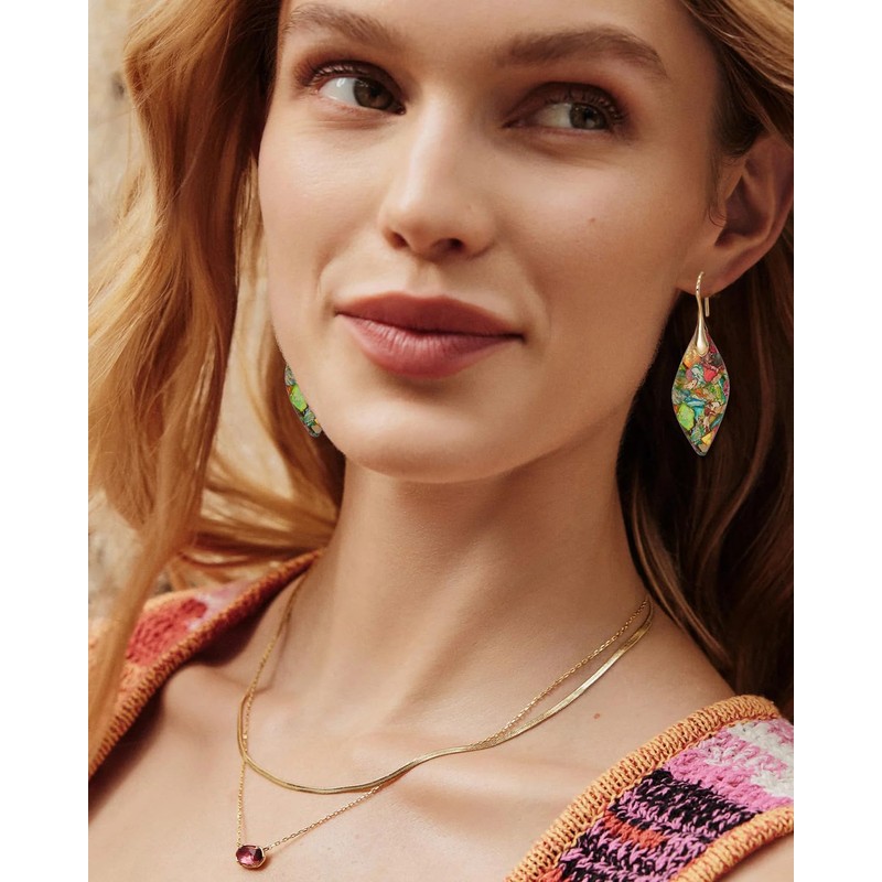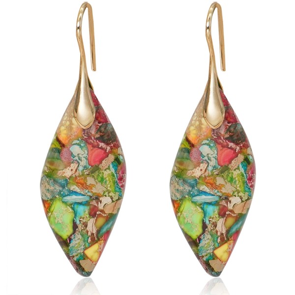 Wovanoo Natural Stone Earrings Multishape Dangle Drop Earrings Boho Stone Earring for Women Leaf Colorful Gold