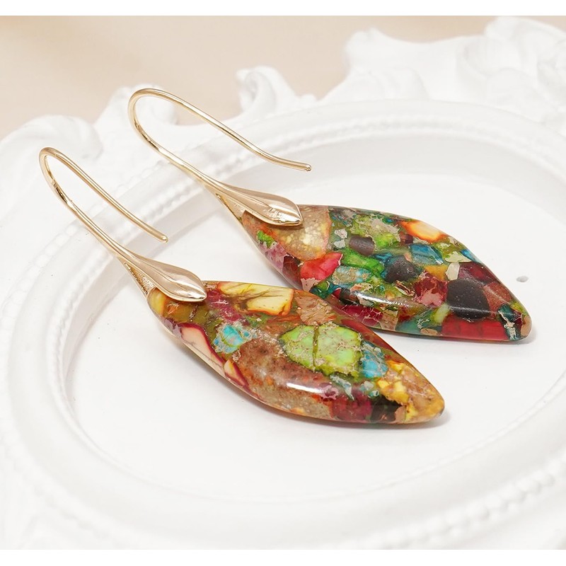 - Design: Each pair of natural stone dangle drop earrings features a rich palette of natural stone colors, making each piece unique and eye-catching. These earrings are sure to draw attention and showcase your individual style.