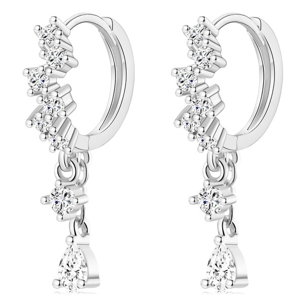 WOVEE Hoop Earrings AAA Zirconia with Drop Pendant Small 10 mm Earrings Hanging White Gold-Plated Tassels Dangle Women, Cubic Zirconia
