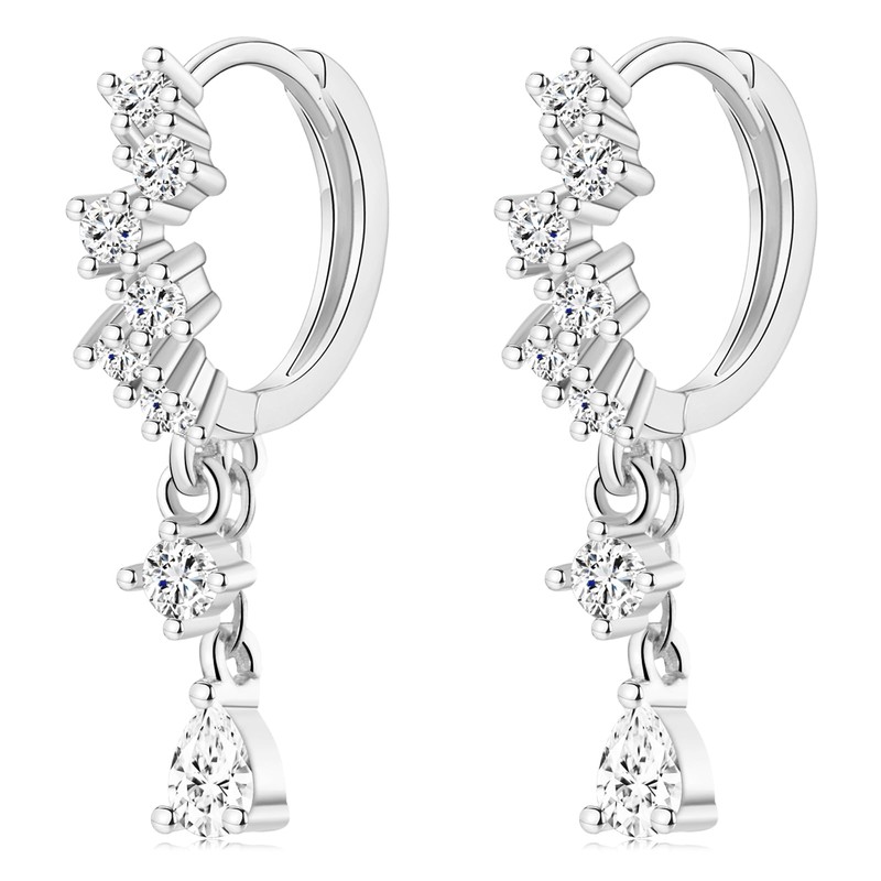 - Size: hoop earrings inner diameter 10 mm, small hoop earrings with hanging zirconia drops.