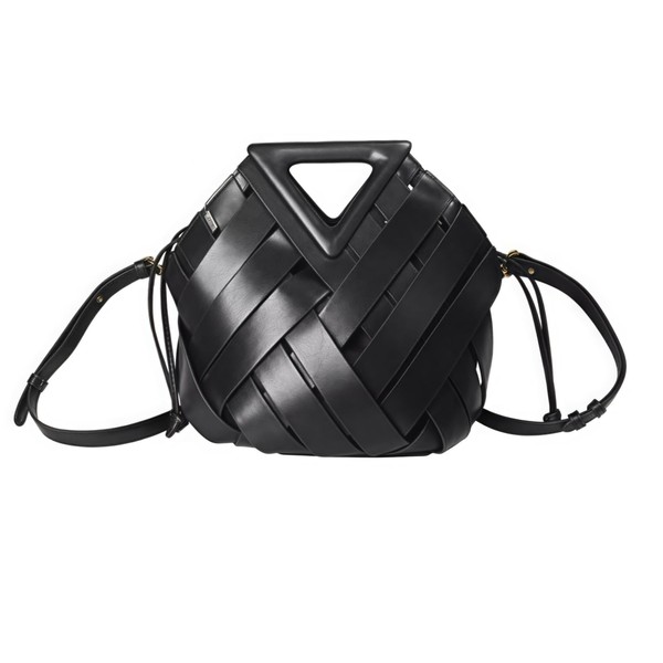 Woven Bucket Crossbody Bags for Women, Retro Leather Tote Handbag Top-handle Hobo Purse Inverted Triangle Shoulder Bag, Black