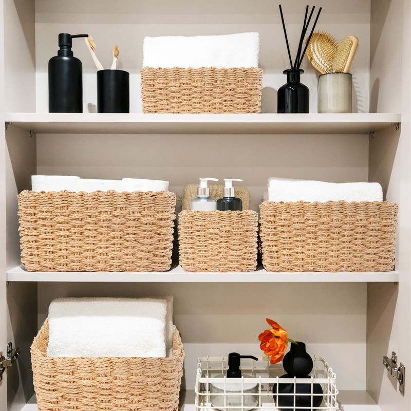 - MULTI-PURPOSE WOVEN BASKET: Our storage baskets bring the fun back into organizing, giving you full creative freedom. Place one in your bedroom as a stylish yet practical bedroom accessory, use it as a shelf basket or as a make-up organizer on your dressing table, or even use it in the nursery to store your little one’s toys