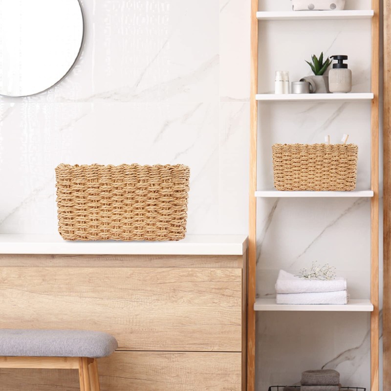 - Precautions : 3 x Paper Rope Storage Baskets The Tips- Due to manual measurement, please allow 1-3cm error. Do not expose the paper woven basket to the sun for a long time or be washed by rain, so as to prevent the woven fabric from becoming too dry, getting old and becoming brittle. Do not leave the paper woven organizer in a damp and dark place for a long time to avoid mold. If it gets wet, dry it in a well-ventilated place