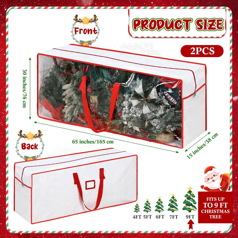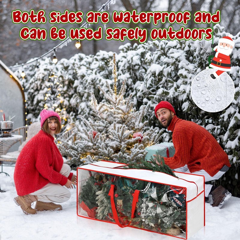 - Secure Storage: our artificial tree storage bags are made from waterproof polyethylene plastic, with a transparent front made of PVC; It protects water, dust ensuring that your Christmas tree remains in its original condition until the next season