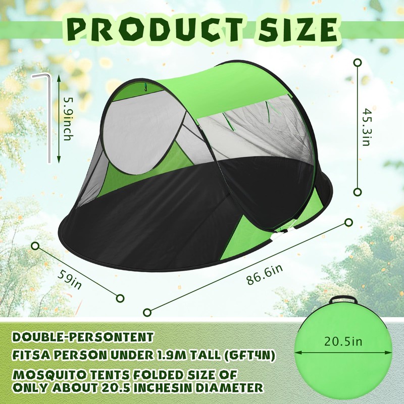 - the Compact Outdoor Journey: don't underestimate our 2 person pop mosquito tents based on their folded size of only about 25 inches in diameter; Once expanded, they turn into a personal sanctuary of about 114.17 x 78.74 x 45.28 inches; A comfortable shelter suitable for 2 person, while also being portable and easy to carry around