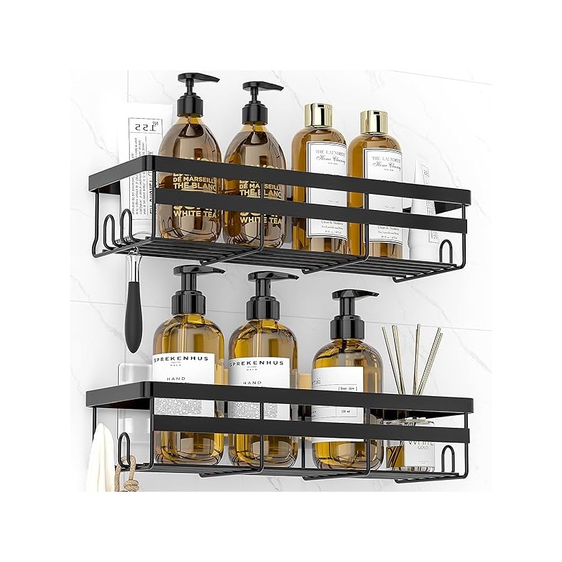 WOWBOX Adhesive Shower Caddy Shelf, 2 Pack - Hanging Bathroom Organizer, No Drilling Stainless Black Shelves for Storage & Home Decor