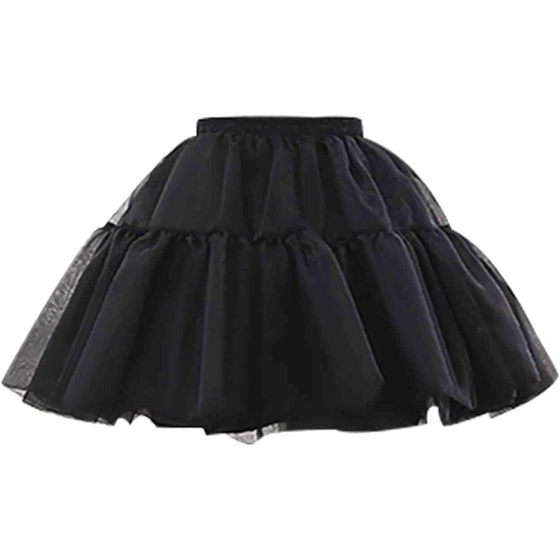 WOWBRIDAL Women's Petticoat 50s 4 Levels Hoopless Short Length Tulle Crinoline Underskirts Dress Bubble Skirt Above Knee Black