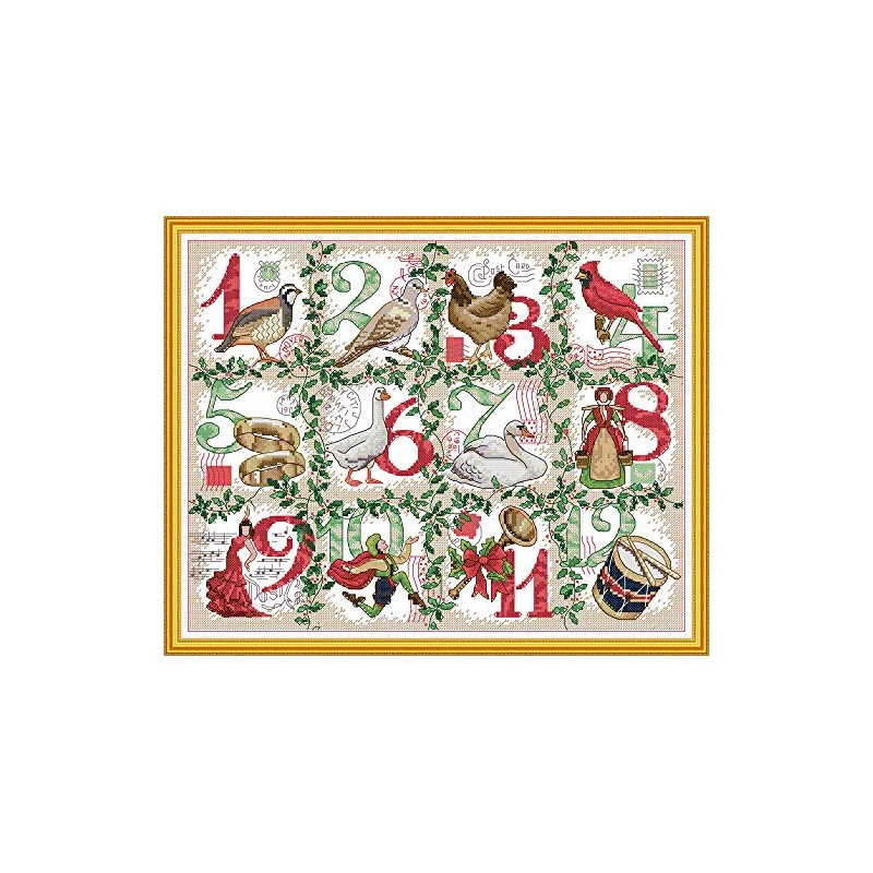 WOWDECOR Cross Stitch Embroidery Kits for Adults Kids, Christmas Twelve Day Animals 11CT Stamped DIY DMC Needlework Easy Beginners